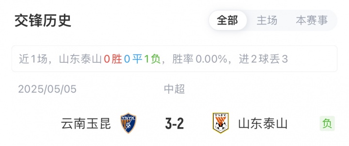 当今,山东泰山12胜6平7负积42分位列中超第6,近6轮比赛泰山4胜2平保握不败;云南玉昆8胜7平10负积31分位列中超第10,球队近期3负2平连合五轮不堪。本赛季两边首回合比赛,泰山遭玉昆让二追三逆转。
