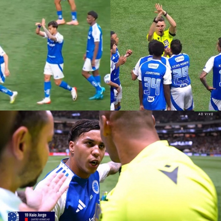 在一场克鲁塞罗对阵米内罗竞技的巴甲联赛中,凯奥-若热在对方扳平比分后,向主裁判作念出了“戴手铐”的手势。主裁判发轫并未察觉,但经视频助理裁判提示后,径直向他出示红牌将其罚下。