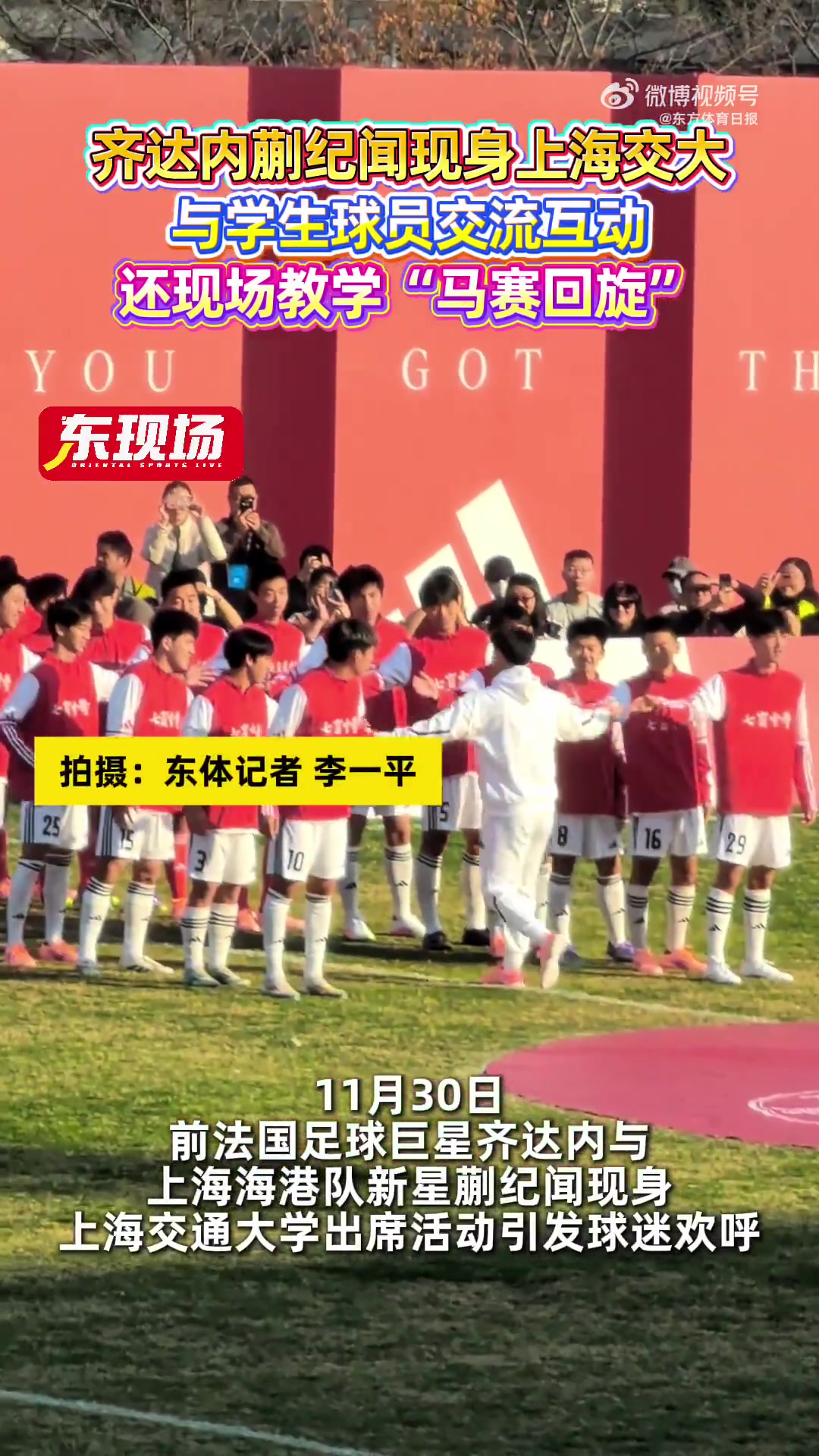前法国足球巨星都达内与海港新星蒯纪闻现身上海交通大学进入步履,两东说念主与学生球员调换互动,还切身素养“马赛回旋”。