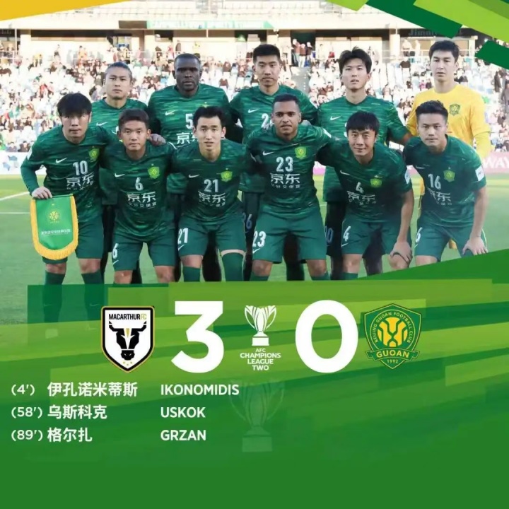 国安官方在本场比赛的战报中写谈:“10月2日,在2025-26亚冠二级联赛小组赛第2轮中,北京国安客场0-3负于麦克阿瑟FC。上半场比赛第4分钟,对方由伊孔诺米蒂斯打入一球。濒临澳超球队的肉体招架强度,北京国安赫然不太稳妥。第12分钟,张玉宁禁区边际放肆抽射,莫得掷中球门。第23分钟,李磊前插到禁区内射门,球被对方门将化解。终末本领,李磊的前插再度制造要挟,可惜莫得变成射门。上半场比赛收尾,北京国安0-1麦克阿瑟FC。易边再战,第52分钟,张玉宁禁区外倒钩射门偏出。第58分钟,对方由6号乌斯科克再入一球。随后,国安接连换上法比奥、古加、曹永竞、林良铭和塞尔吉尼奥等队员加强遑急。第71分钟,古加禁区前沿的远射偏出。第89分钟,麦克阿瑟FC由格尔扎攻入第3球。最终,北京国安客场0-3负于麦克阿瑟FC。
