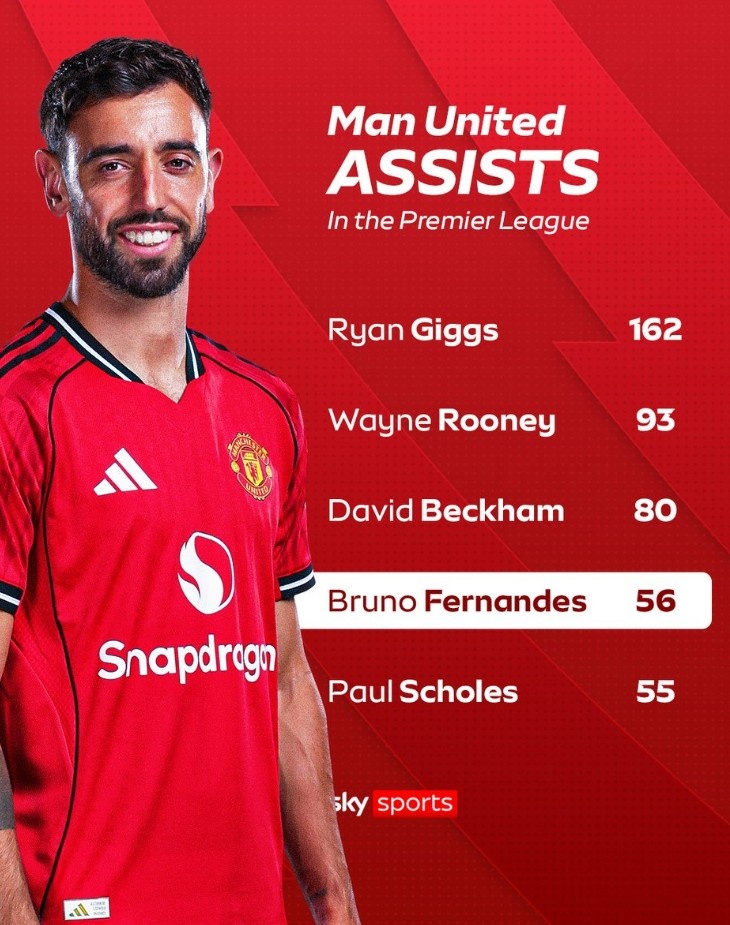 B费曼联生存英超助攻数照旧达到56次,独特名宿斯科尔斯,以下为曼联队史英超助攻榜: