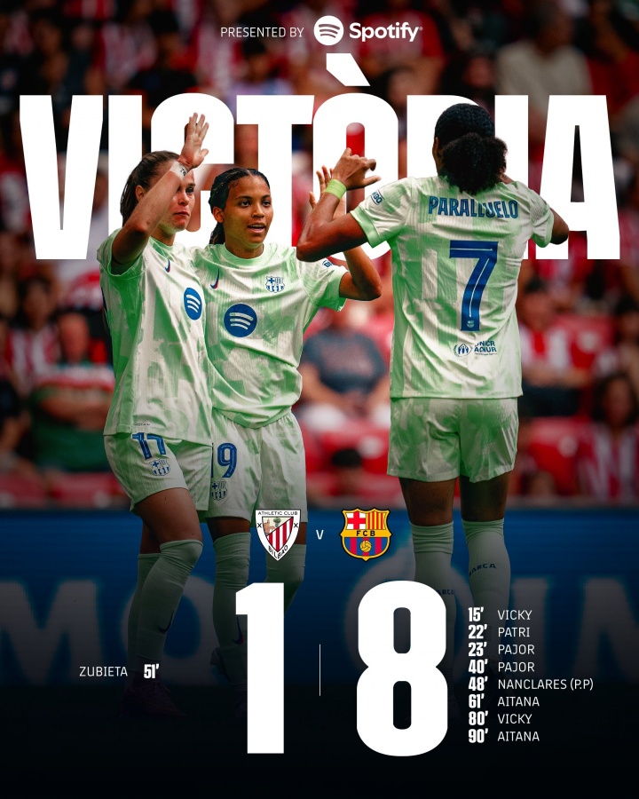 09月07日讯 西女甲比赛第2轮,卫冕冠军巴萨女足客场以8-1的比分横扫毕尔巴鄂女足,获取2连胜。