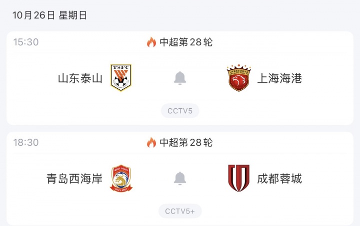 本周日海港将在联赛客场挑战泰山,过期2分的蓉城将客场挑战西海岸。