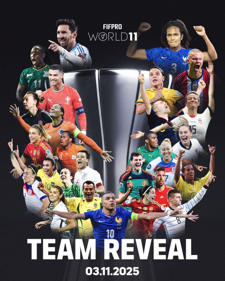 10月22日讯 海外奇迹足球通顺员蚁合会(FIFPRO)官方音书,2025年度寰宇最好11东谈主阵将在当地期间10月27日公布候选名单,最终成果将在当地期间11月3日出炉。