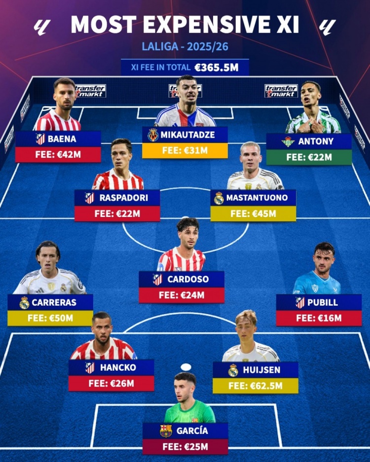 9月4日讯 德国转会阛阓列出了西甲今夏最贵引援声威,安东尼、马斯坦托诺、赫伊森、卡雷拉斯在列。