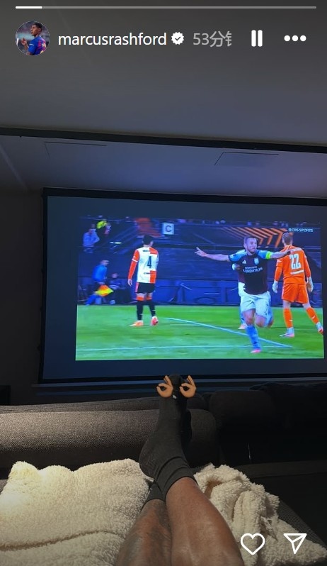 10月3日讯 不久前,拉什福德更新了应答媒体,晒出了我方收看维拉欧联比赛的相片。