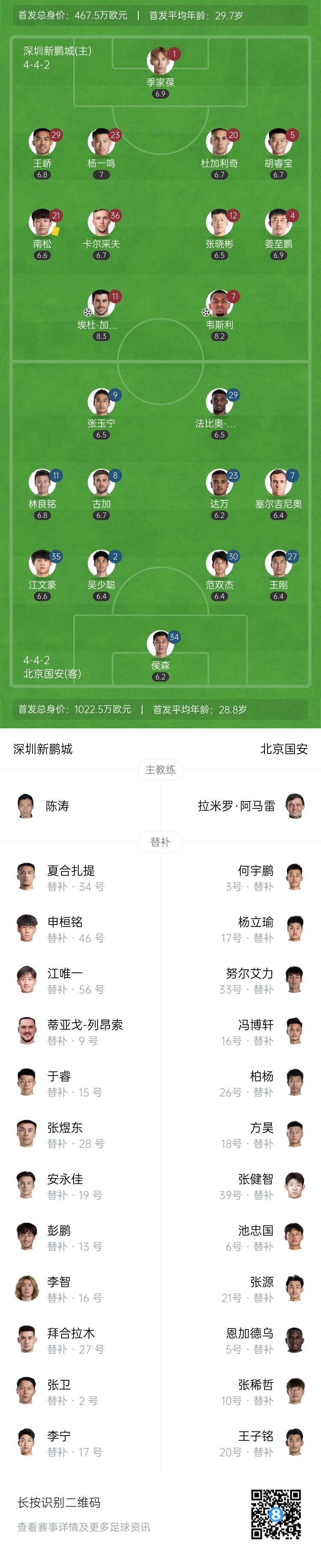 伤停补时3分钟。上半场比赛截至,深圳新鹏城2-0北京国安。