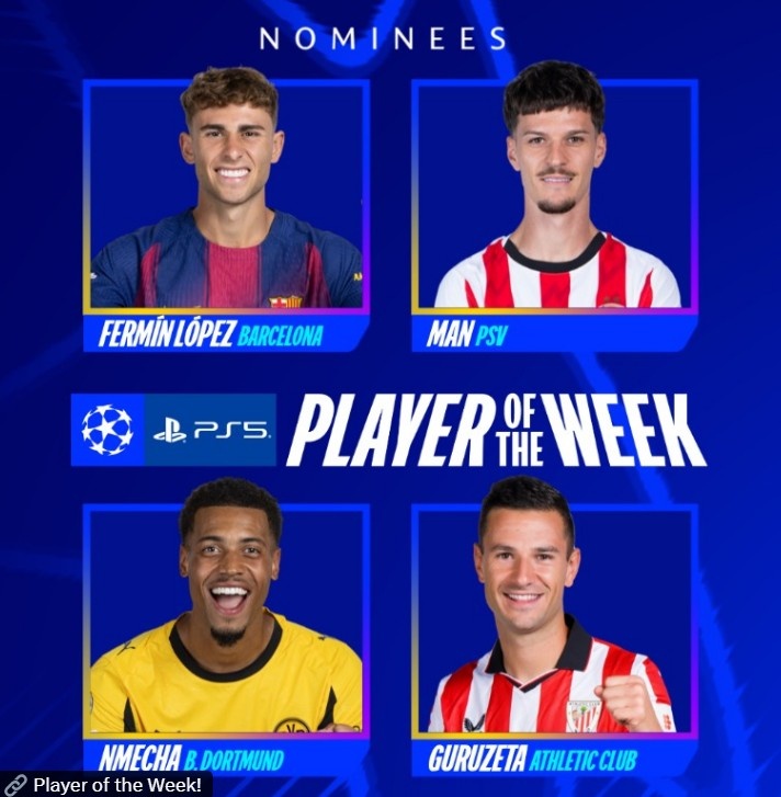 你的位置:欧洲杯足球比赛直播 > 意甲 > 欧冠官方本轮最好球员候选:费尔明领衔、恩梅查、丹尼斯-曼在列