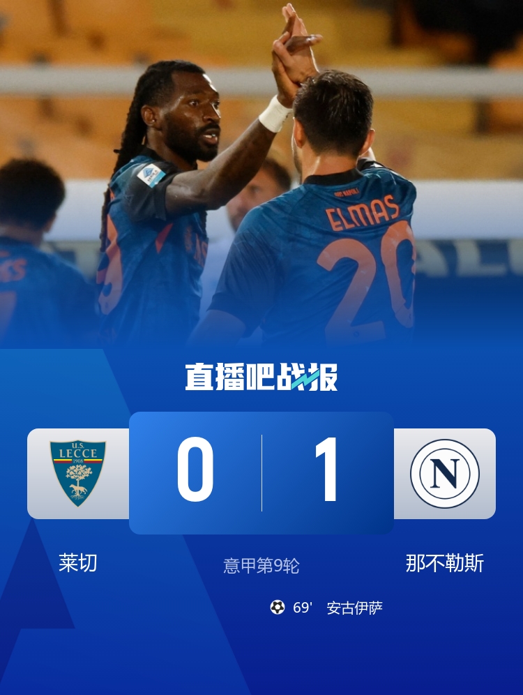 安古伊萨制胜,瓦尼亚扑点,那不勒斯客场1-0慑服莱切得到两连胜。