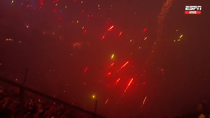 次回合,竞技队的主场氛围让全天下为之传诵。尽管本场比赛最终比分是0-0,然则总统庇隆球场超燃的画面,硝烟足够堪比干戈,能见度不及5m,极其震荡。