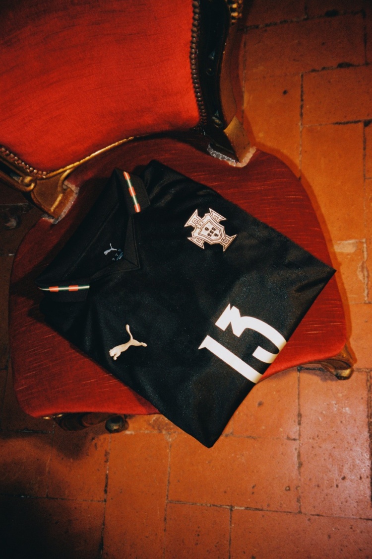 这套球衣由彪马经营坐褥,球衣主体为玄色,衣袖和衣领处有葡萄牙国旗配色。