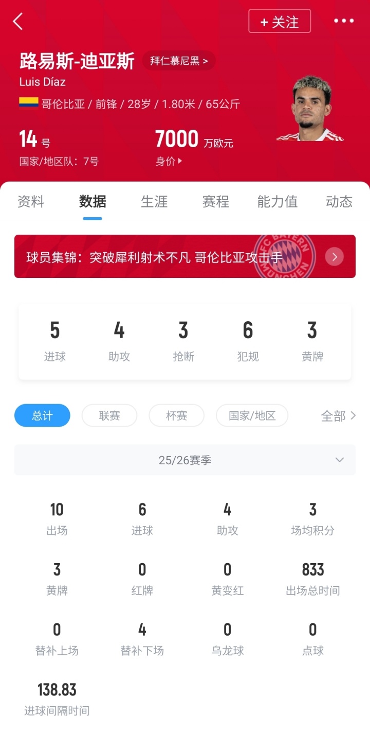 10月07日讯 德甲第6轮,拜仁3-0打败法兰克福,迪亚斯2射1传独造3球,加盟拜仁以来10场孝敬6球4助。The Athletic点评了这笔曾备受争议的转会。