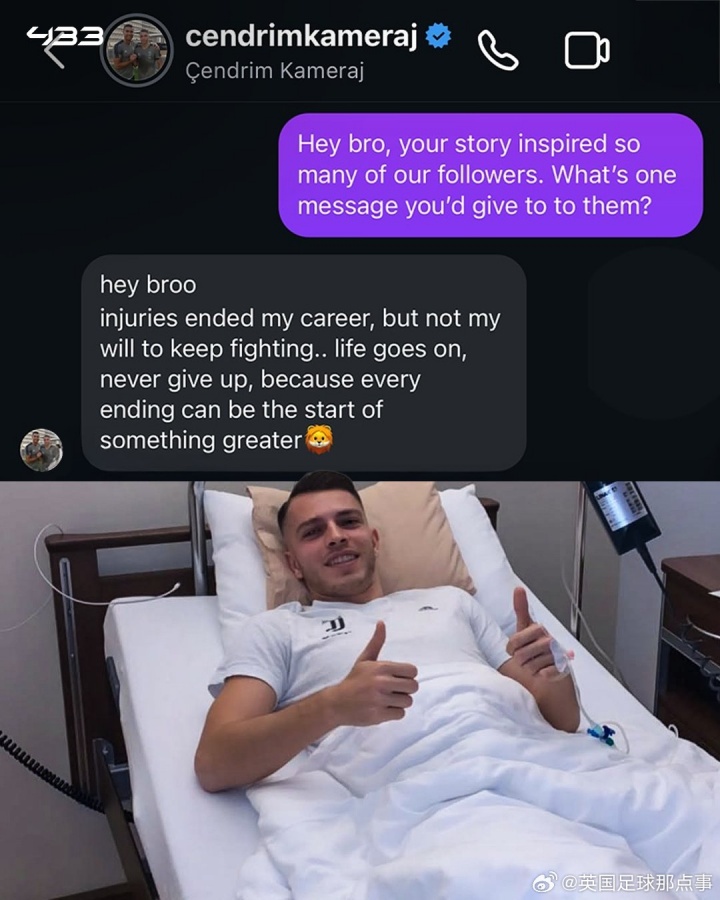 好多东说念主被他的轻薄感动,有东说念主发私信问他有什么话念念对球迷们说。他的复兴——“伤病闭幕了我的管事生计,却无法闭幕我链接兴盛的认知。人命永不休息,毫不轻言消灭,因为每一个异常王人可能开启更伟大的征途。”