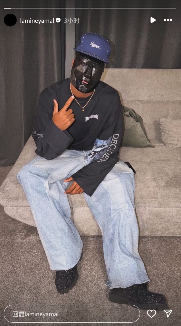 10月31日讯 亚马尔更新社媒动态,晒出我方戴玄色面具的相片。