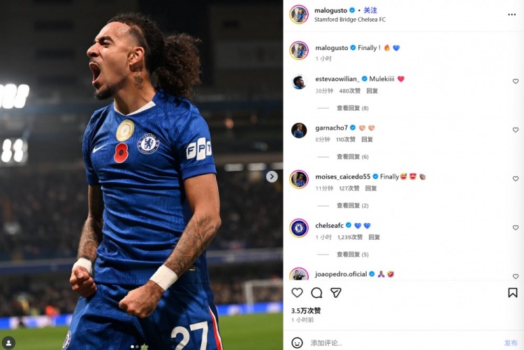 11月9日讯 切尔西在本轮英超3-0完胜狼队,古斯托为球队首开记载也解锁个东谈主功绩生存处子球。