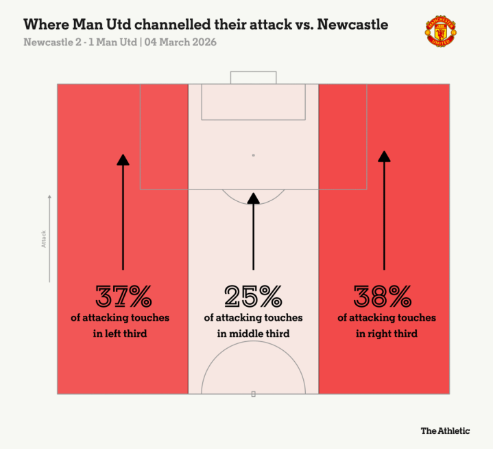 对水晶宫的对决中,曼联左路攻击战术占比达到本比联赛季最低水平,如果不是水晶宫打了欧协杯耐久性不足,后半场间歇时间还少打一人,曼联能否取胜也会构成疑问。