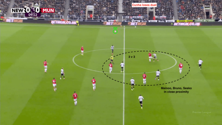 曼联希望库尼亚与纽卡斯尔的英格兰国脚特里皮尔身体冲撞,数据显示,库尼亚最终触球68次,踢了77分钟的姆贝莫只有36次,谢什科才24次。