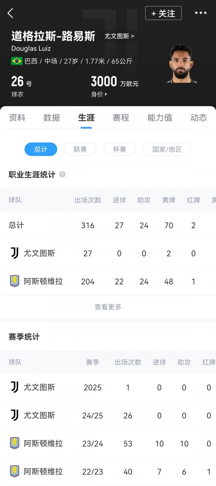 说念格拉斯-路易斯客岁夏窗以5150万欧元的转会费从维拉加盟尤文,但扫数这个词2024/25赛季,说念格拉斯-路易斯只出场26次,莫得孝敬任何进球或助攻。