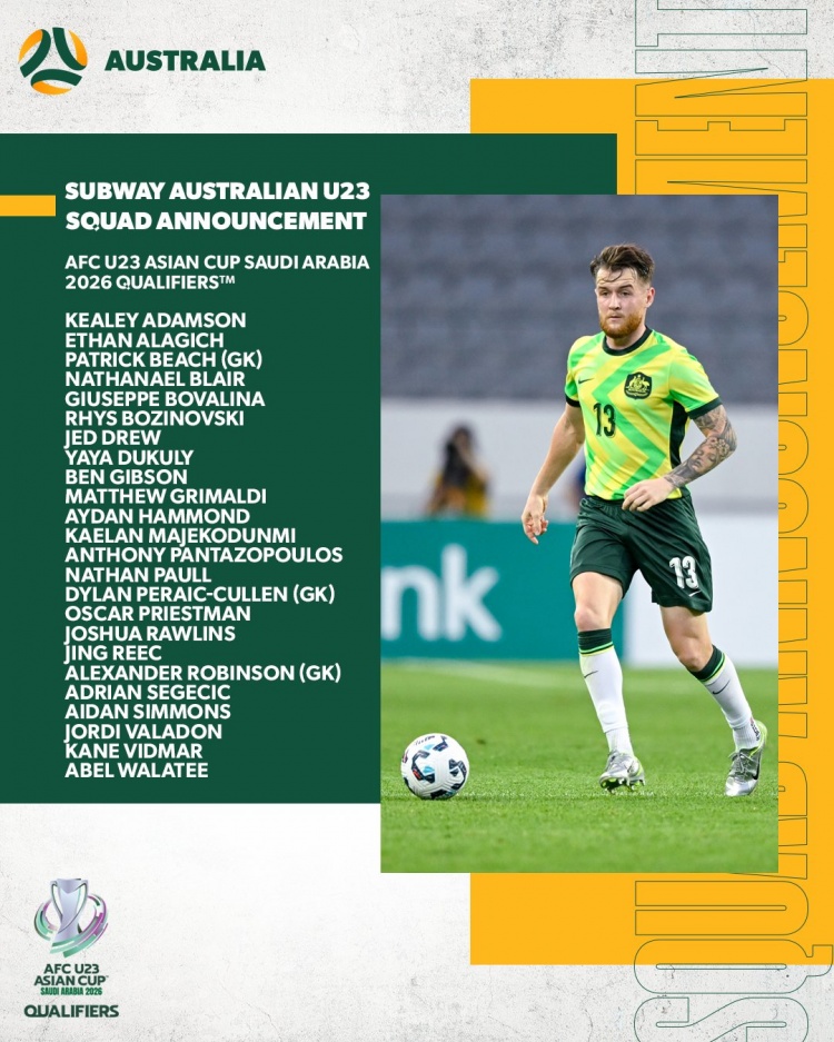 澳大利亚U22队本年在主教悔托尼-维德马尔携带下进行了两期集训,于是他此番征调的24名球员也所以插足此两期集训的球员为班底,球员也大多为2003/2004年齿段的适龄球员,而像伊兰昆达、沃丁汉姆、本尼、吉吉尼亚斯等2005/2006低年齿段精英球员从来莫得被维德马尔征调过,因此也就无缘插足U23亚初赛。