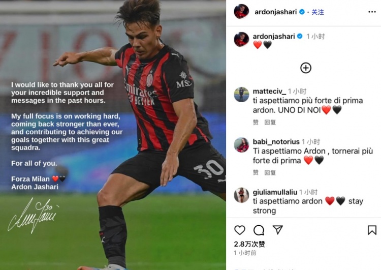 8月29日讯 AC米兰本日官方通知,球队新援亚沙里在覆按中与S-希门尼斯碰撞受伤致右腓骨复合型骨折,将剿袭保守挽救议论。把柄迪马济奥等的报说念,球员将濒临恒久伤缺。