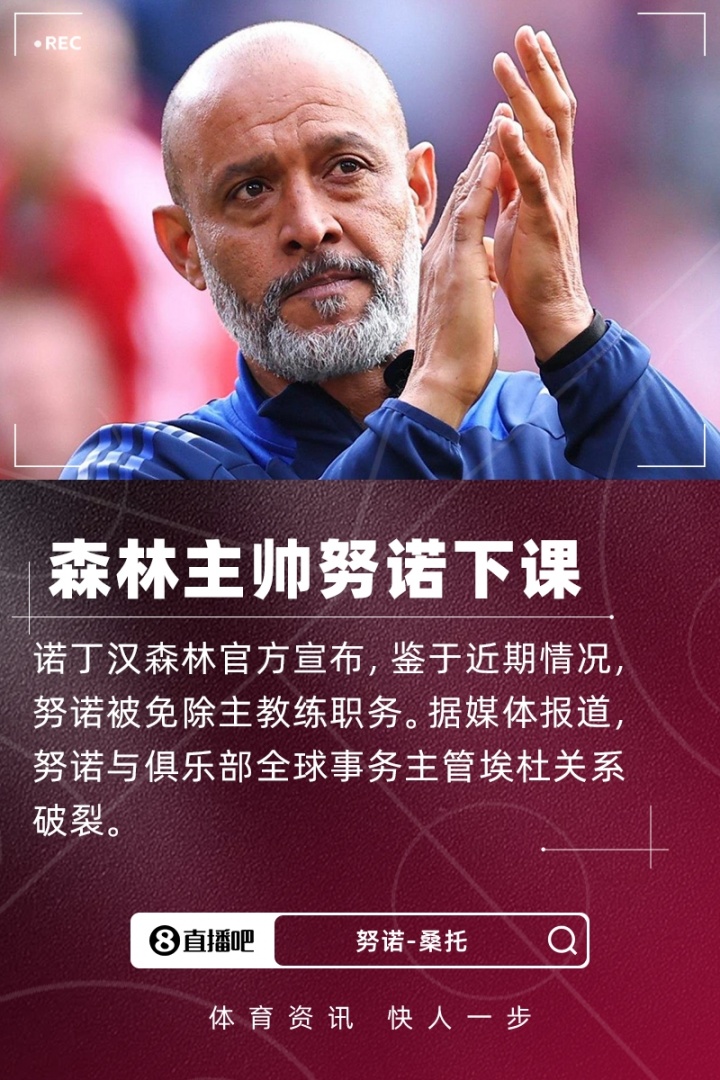 诺丁汉丛林足球俱乐部证明,鉴于近期情况,努诺·埃斯皮里托本日已被罢黜主教训职务。