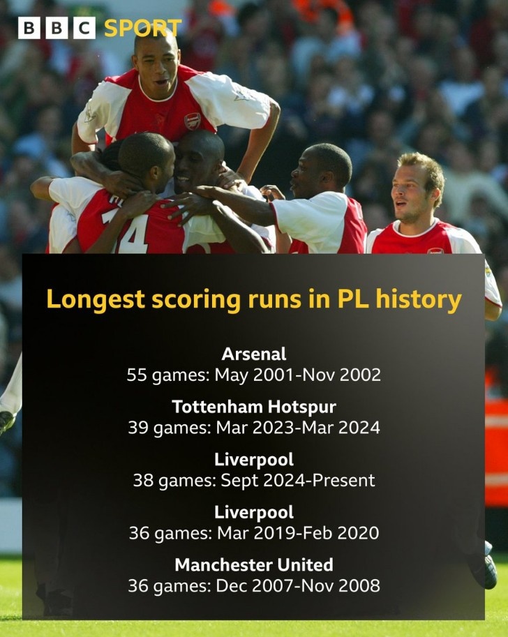 9月15日讯 在本轮英超,利物浦1-0打败伯恩利,不绝了球队贯串进球场次记录。以下为英超历史连场破门记录榜: